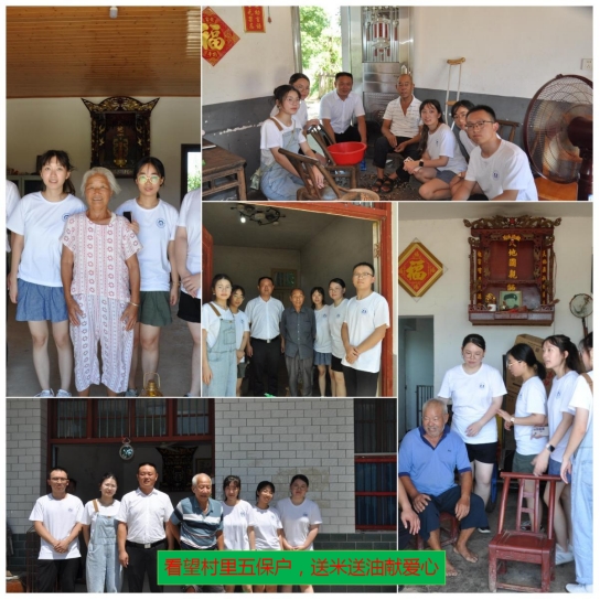 在村委熊文斌书记的带领下,同学们自己提前准备了大米和食用油,一一探望了湛水村的五名五保户老人。村上的五保老人生活有保障医疗有保险,村干部就是她们的亲人。同学们听他们讲述自己的生活与健康情况,向老人们表达了的敬重与爱心。