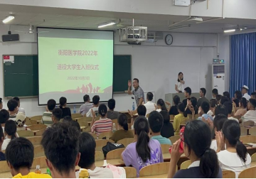 为激发全院在校学生强军爱国情怀,帮助李振洪等12名退役复学的同学尽快转变身份、融入学校生活,10月3日晚,衡阳医学院于南华楼312教室举行2022年退役大学生入班暨征兵宣传形象大使聘任仪式。参与活动有衡阳医学院党委副书记卢清华,班主任代表、学院办公室主任、医类02班班主任肖建忠,学院征兵专干麻勇,2022级辅导员郭志勇、王雅嘉,2021级退役大学生代表谭鸿益,2018级退役大学生代表梁育瑄,以及2022级口腔01班、口腔02班、医类01班、医类02班、医类08、医类09班的部分学生代表。仪式由2022级年级办主任周玲主持。