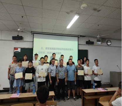仪式上,2022级退役大学生代表李振洪分享了自己的军旅生活及参军入伍的收获感悟,2021级退役大学生谭鸿益作了退役复学后学校学习生活经验分享,已推免至中南大学的2018级梁育瑄进行了退役大学生推免研究生经验交流,引得台下同学阵阵惊叹。随后,学院副书记卢清华、班主任代表肖建忠分别为12名同学颁发了衡阳医学院征兵宣传形象大使聘书,并宣读了入班通知,现场气氛十分热烈。