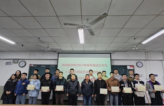 紧接着,周玲老师宣读了入班通知,各班班长对新成员握手欢迎,现场气氛十分热烈。学院党委副书记卢清华,辅导员郭志勇、王雅嘉分别为15名同学颁发了衡阳医学院征兵宣传形象大使聘书。