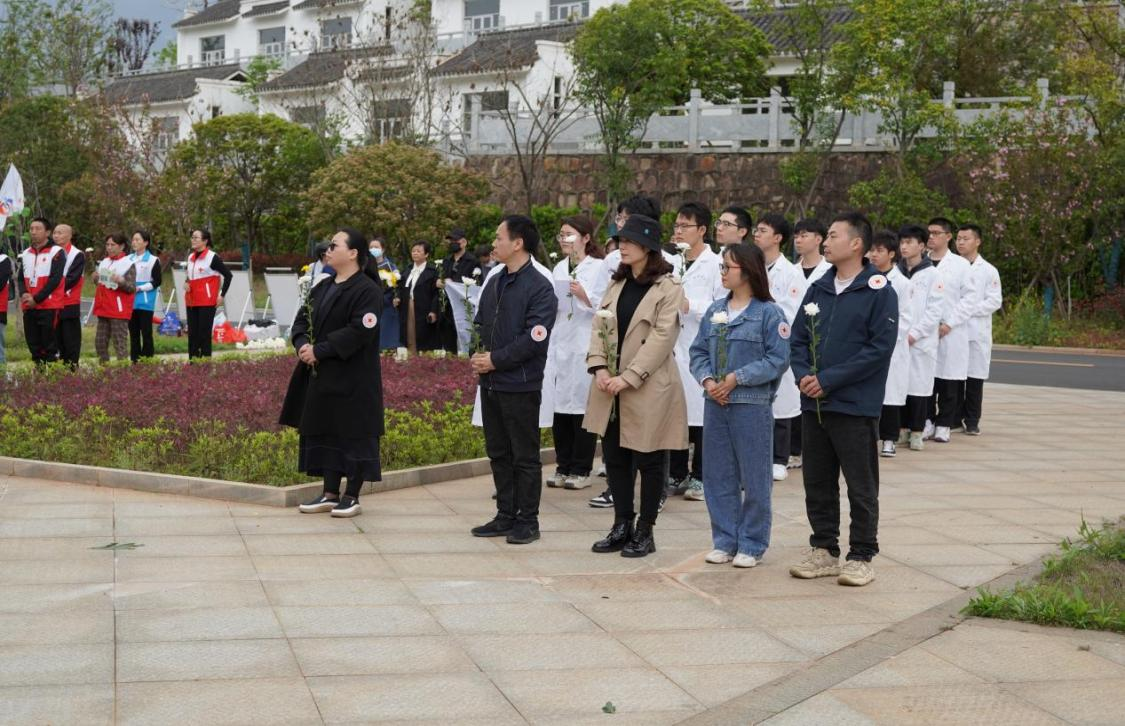 为缅怀平凡而伟大的遗体和人体器官捐献者,弘扬他们无私奉献的精神,4月4日上午,南华大学基础医学院20余名学生代表在人体形态学实验中心周小兵、姚婕、王潜等老师的带领下参加了由衡阳市红十字会主办的“遇见生命”2023年衡阳市人体器官捐献缅怀纪念活动。