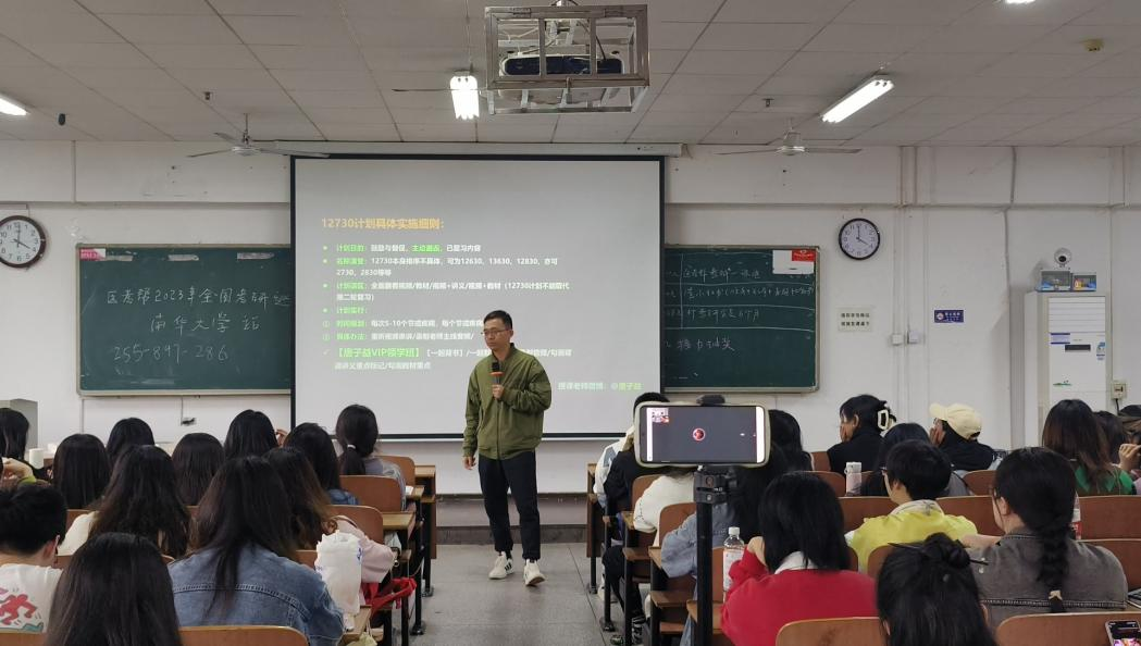 4月22日下午,由基础医学院团委科创部举办的“考研经验分享讲座”活动在南华楼211教室举行。临床医学著名考研讲师唐子益进行考研经验分享。基础医学院各年级学生代表约150人参加本次讲座。
