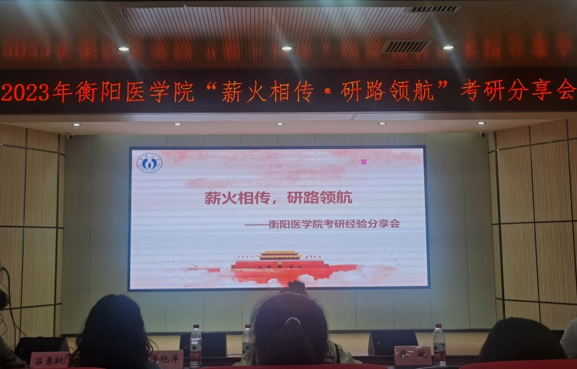 为引导医学生把握考研方向,规划未来航道,5月13日下午,衡阳医学院“薪火相传,研路起航”考研经验分享会在医研楼报告厅举行。衡阳医学院团委书记廖敏、2019级辅导员麻勇,2021级辅导员唐倩倩出席本次活动。活动线上线下同步进行,全体医学生广泛参与,衡阳医学院2021级、2022级学生代表于线下参加本次活动,一千余人观看线上直播。