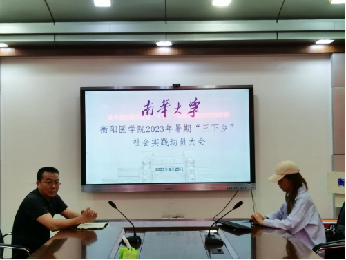 为进一步做好2023年暑期三下乡社会实践活动,6月25日上午,南华大学衡阳医学院于医学楼会议室召开了2023年暑期“三下乡”社会实践动员大会。衡阳医学院党委副书记卢清华、院团委书记廖敏出席本次会议,全体活动学生约50人参加会议。