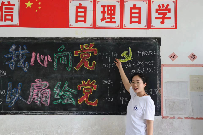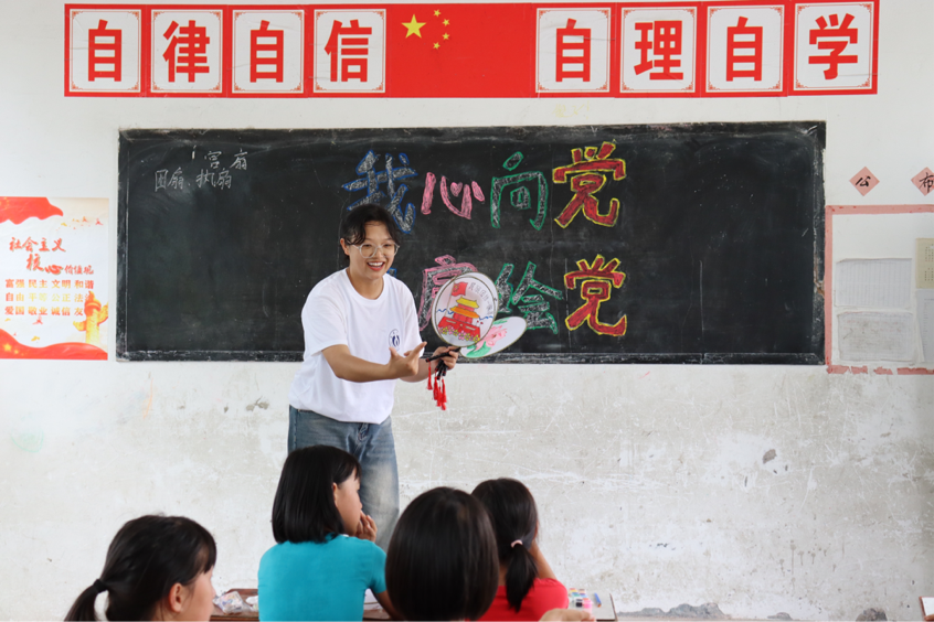 7月14日下午,南华大学衡阳医学院2023年湖南省“芙蓉学子•乡村振兴”公益计划项目之“仲夏芙蓉医路行,医路向前”志愿服务团队成员走进邵阳市绥宁县东山侗族乡牛背岭村,组织侗族儿童开展“我心向党•以扇绘党”团扇绘画实践主题活动。