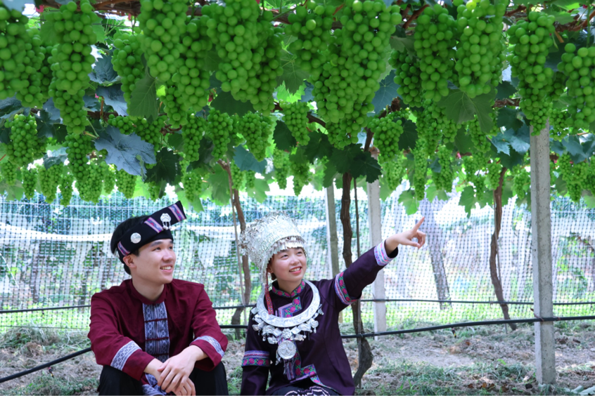 红提联结民族心,青春助力乡村兴:“欢迎大家前来品尝,口感清爽而丰盈,花瓣柔软多汁的阳光玫瑰。脆甜可口,果肉多汁细腻的紫玉红提,肉质饱满,色泽诱人的浪漫红颜。”一位身穿侗苗族服饰的团队成员对着镜头说道。在感受民族文化的同时,团队成员们也在为一年一度于每年十月举办的“东山红提节”预热剪辑宣传视频,并拟于十月份利用课业时间延续情缘,惠农直播助力乡村振兴。