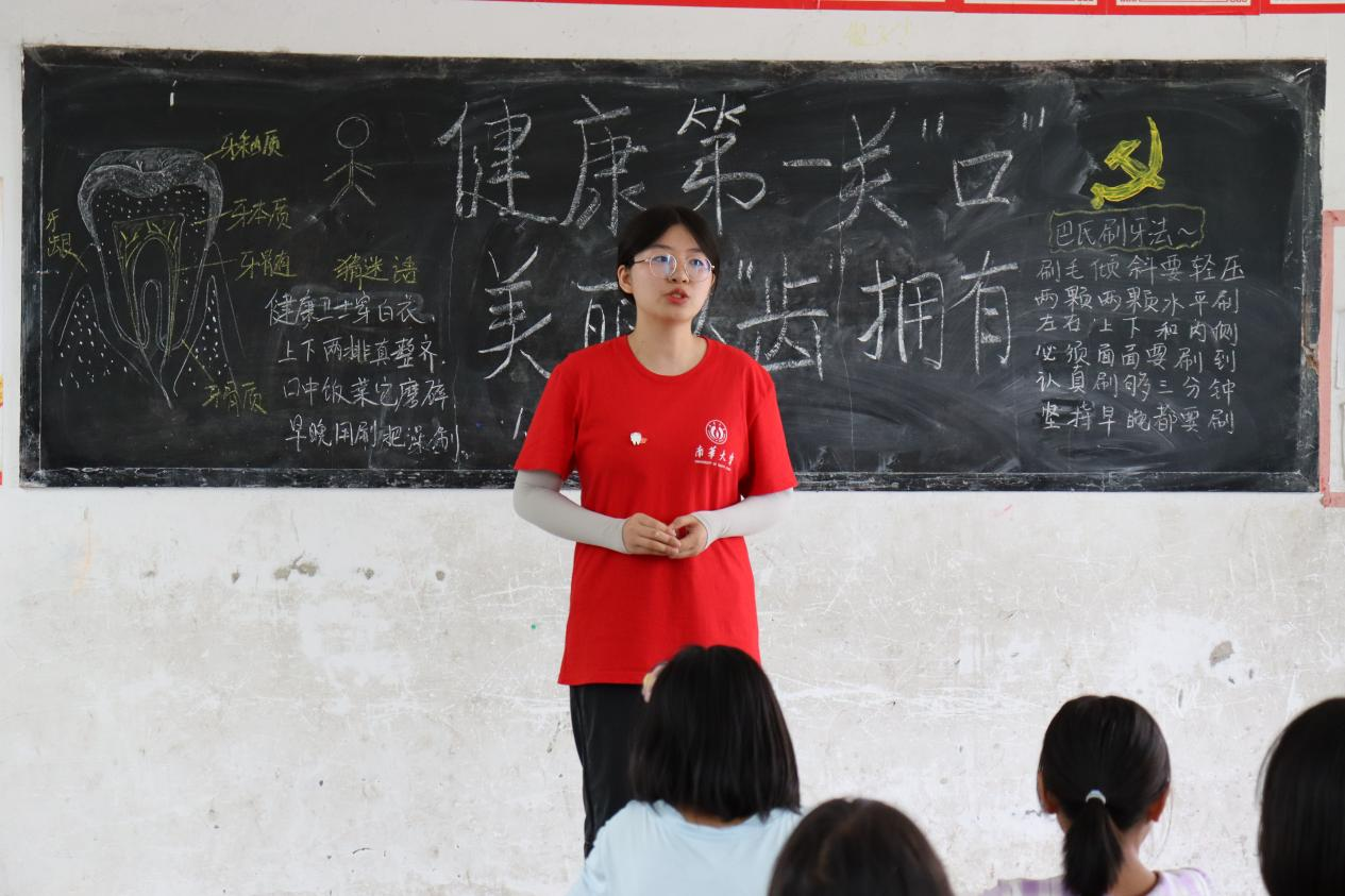 7月15日下午,南华大学衡阳医学院2023年湖南省“芙蓉学子•乡村振兴”公益计划项目之“仲夏芙蓉医路行,医路向前”志愿服务团队成员赴邵阳市绥宁县东山侗族乡牛背岭村给侗族和苗族儿童口腔健康知识普及讲座,帮助少数民族儿童学习口腔日常保健知识,树立口腔卫生保健习惯。