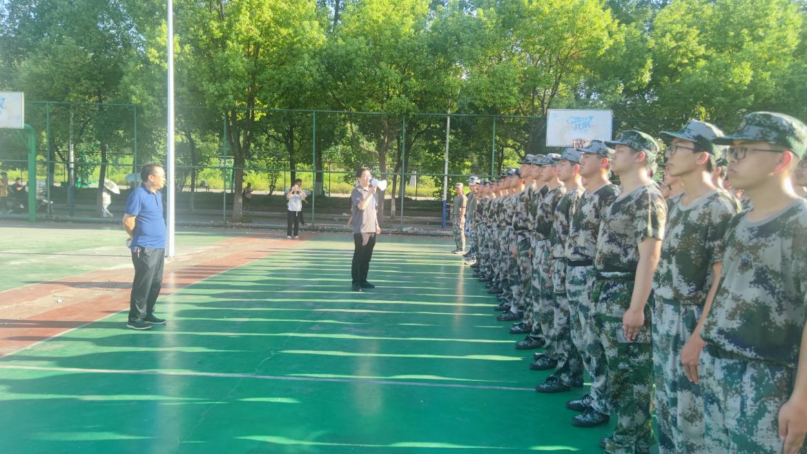 北校篮球场上,六个连的新生和教官们整齐列队,昂首挺胸,接受院领导的检阅。