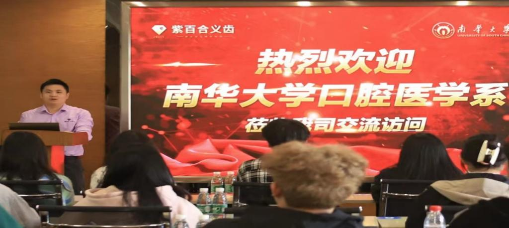 紫佰合义齿生产部主管伍俊和汪竞展示紫佰合公司的发展历史和产品设计,并详地细向大家介绍新引入的数字化种植技术、正畸新型产品的生产流程和工序,让同学们直观的感受到数字化对于口腔行业的多重优势。