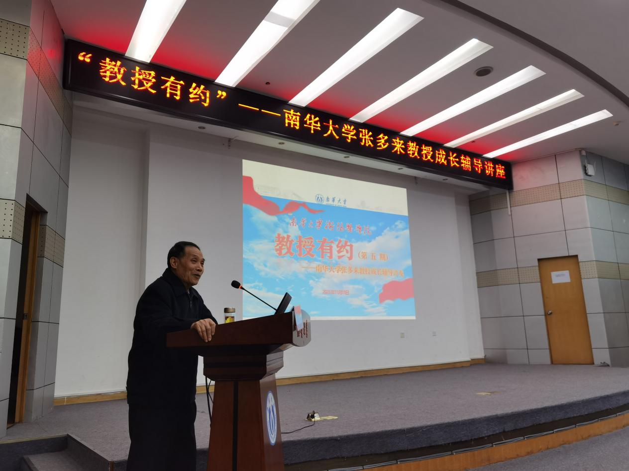 为帮助同学们了解衡阳医学院院史,引领学生奋发有为、茁壮成长。11月11日晚,南华大学衡阳医学院“教授有约”系列学生成长辅导讲座“第五期”在图书馆学术报告厅举办。本次活动由南华大学衡阳医学院主办,邀请南华大学原马列部主任张多来教授主讲,题目为《时代造就衡医精神,改革传承核医精神,高质量推进南华“双一流”建设》。衡阳医学院党委副书记卢清华、辅导员周玲及衡阳医学院250余名学生代表参加。