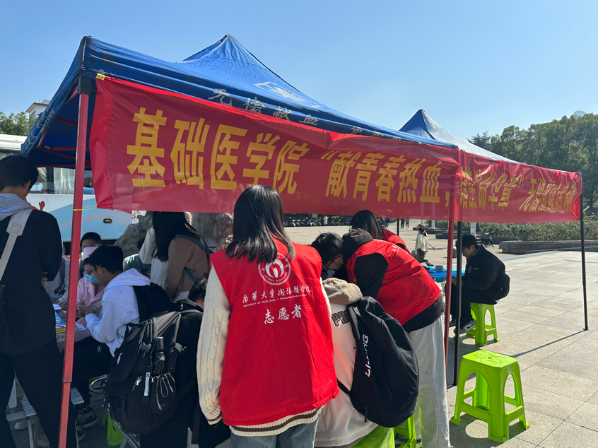 2023年11月17日,正值国际大学生节,南华大学衡阳医学院“献青春热血,谱生命华章”无偿献血活动于红湘校区南华广场顺利开展。据统计,100余人参与到无偿献血活动中,70余人成功献血,献血量达2万余升。