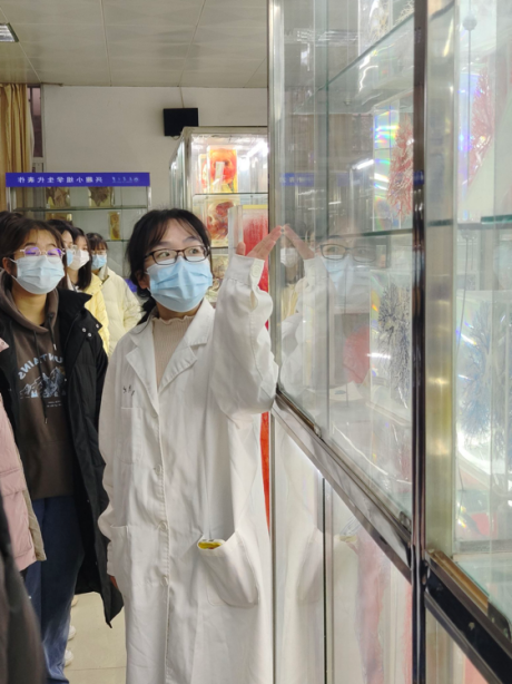 活动现场,2023级医学生在学院解剖兴趣小组成员的带领下依次排队参观。解说员详细介绍了铸型标本的制作过程,使同学们对人体标本制作有了更加全面的认识,深刻体会到标本制作的不易。在讲解过程中,同学们积极参与互动,面对学长学姐的提问,认真思考,踊跃回答,深入了解人体结构奥秘。在随后自由参观的过程中,小组成员也热情为同学们答疑释惑,帮助同学们了解人体解剖的相关知识,揭开人体解剖的神秘面纱。