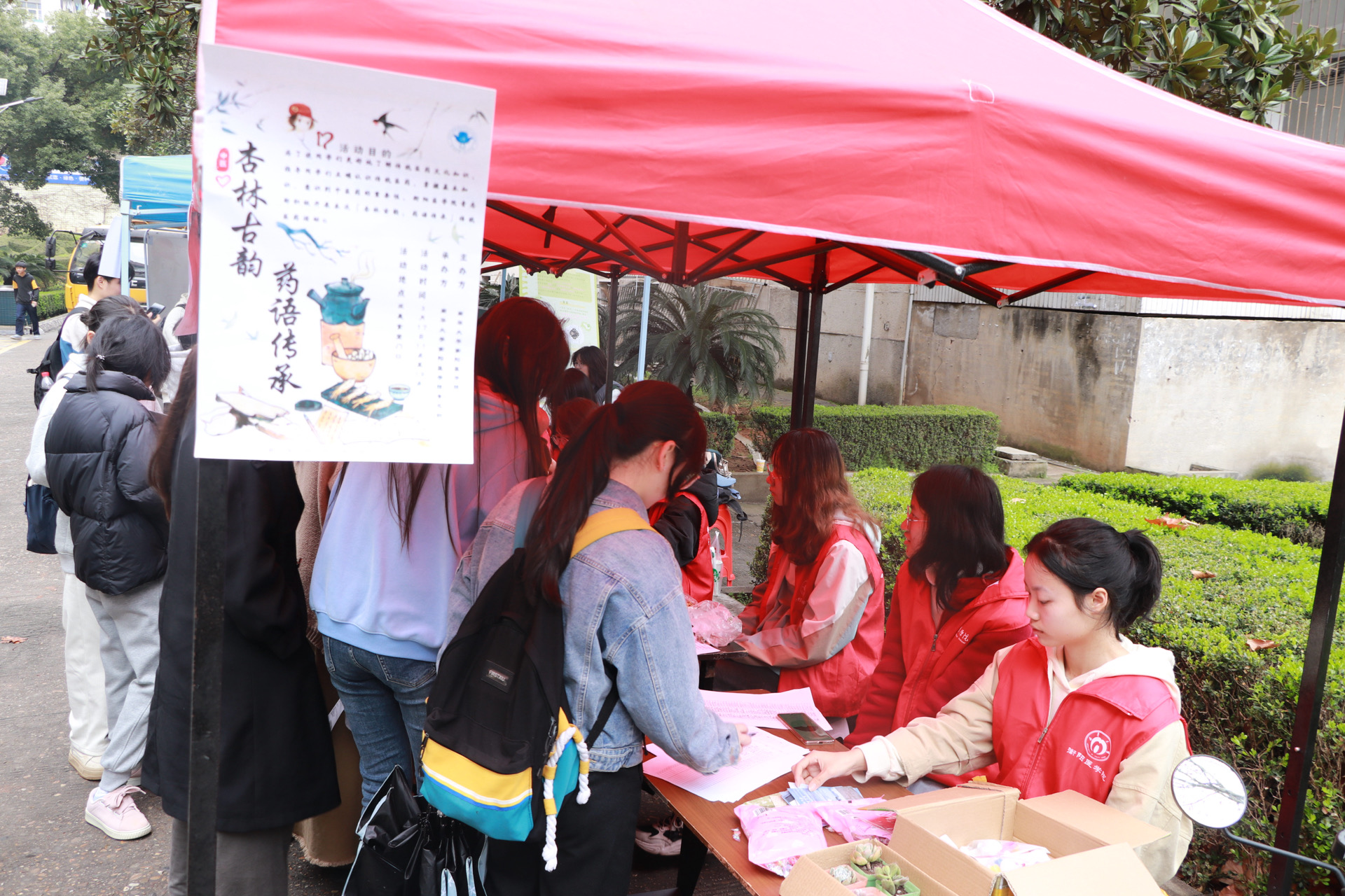 3月16日下午,为了使学生们更好地了解中国中医药文化知识,指导其正确认识传统中医药、应用传统中医药、掌握基本常识、拓宽医学视野,“杏林古韵,药语传承”传承中医药活动在南华大学北校区食堂门口成功举办。本次活动由南华大学基础医学院青志部主办,基础医学院团委宣传部协办,南华大学学生踊跃报名参与,现场气氛活跃,充满欢乐。