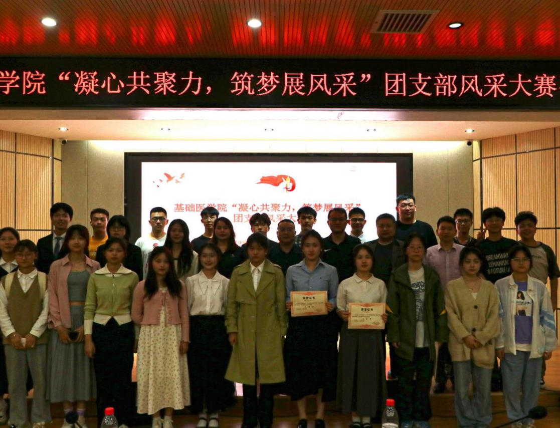 最后,嘉宾与选手们共同合影,预示本次基础医学院团支部风采大赛圆满结束。通过这次大赛,南华大学基础医学院的团支部风采得到了充分的展示,也为学生们提供了一个展示自我、提升自我的平台。这次大赛的成功举办,展示了南华大学基础医学院的学生们团结一致、积极向上的精神风貌,也将激励他们在未来的日子里不断取得更多的成绩。