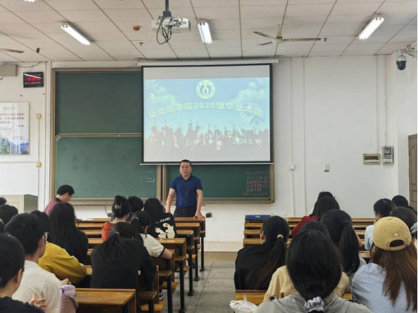 5月10日上午,基础医学院2024届医检、生技专业毕业生大会在南华楼108顺利召开。学院党委副书记卢清华、副院长张晓东、班主任代表唐旻、学工办全体辅导员以及全体生物技术、医学检验专业的毕业生参加了本次大会。会议由辅导员周玉林主持。