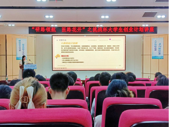 2024年5月17日晚,基础医学院举办“研路引航 医路花开”之挑战杯大学生创业计划竞赛专题辅导讲座。本次讲座特邀南华大学外科学总论教研室主任黄靓老师前来指导。23级年级学工办主任曹霞及100余名同学参加本次讲座。