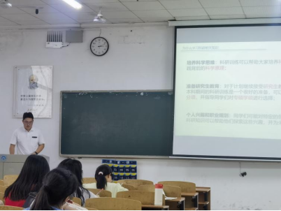 为转变广大学生的心态与思维,通过自身“造血”巩固“输血”的成果,发掘优秀同学为全校学子指导创新科研,给同学们树立良好的模范带头作用,激励广大同学奋发向上。2024年5月26日下午,基础医学院联合护理学院于南华楼111成功举办南华大学“助飞工程”之“科研小白如何入门”专题报告会活动。基础医学院资助专干王雅嘉老师、护理学院资助专干曹鑫老师出席本次会议,会议由李迪同学主持。