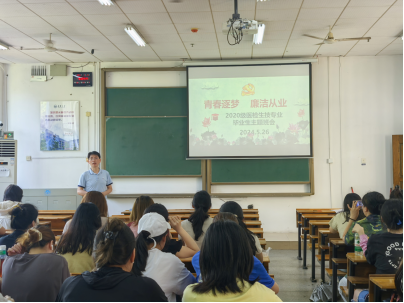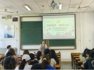 2024年5月26日上午,基础医学院2020级生物技术和医学检验专业的同学们齐聚一堂,在南华楼108教室举行了“廉洁从业与青春恋爱”为主题的班会。年级辅导员周玉林、韩璐,班主任唐旻、文红波共同出席,为即将步入社会的毕业生们送上了殷切期望和深情嘱托。