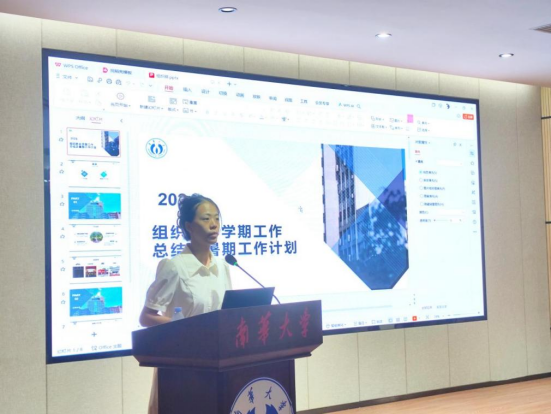汇报完毕后,廖敏上台分别对各部门活动的开展提出意见与建议,希望同学们提高活动开展质量,树立良好的宣传意识,要求干部们要有汇报意识,学会经验总结,做好档案整理与交接,避免同样的问题再次发生。最后她表示希望大家在不久后的考试中取得好成绩。