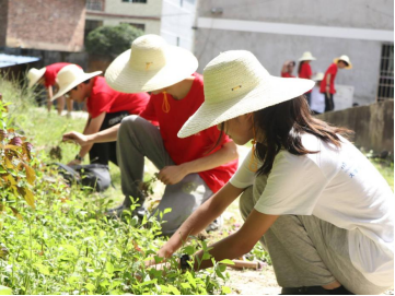服务团的成员们深入村中,帮助村民们清理房前屋后的杂草。他们头戴草帽,或手持镰刀、锄头等工具,或直接徒手消灭杂草。汗水浸湿了衣衫,却阻挡不了他们为村民服务的热情。在他们的共同努力下,村容村貌焕然一新,赢得了村民们的点赞“这群大学生们真棒!”