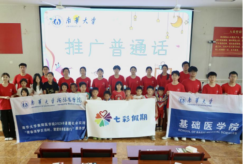 2024年7月9日上午,在第二十七届全国推广普通话宣传周来临之际,2024全国关爱行动“七彩假期”志愿服务团暨南华大学衡阳医学院的“青春逐梦正当时,聚爱扶善医路行”社会实践服务团,带着满腔的热情与责任感,走进了邵阳市隆回县羊古坳镇龙家湾村,开展了普通话推广宣讲活动,向当地的青少年推广普通话。