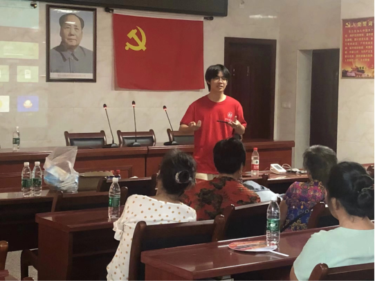 在宣讲结束之后,团队成员们分工合作,杨静茹和黄家伟分发常用家庭医疗用品给村民,吕文博和廖文卓帮村民测量血压,提醒平时注意事项并对老人们的疑问耐心解答。队长黄家伟在活动结束后表示:“把所学知识运用于现实和让基层老百姓理解明白并不是一件容易的事情,我们搞活动虽然很累但是很值得,我们的道路任重而道远。”