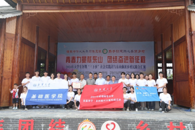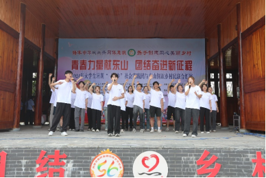 7月18日上午,南华大学基础医学院“芙蓉学子·乡村振兴”公益计划项目团队——“仲夏芙蓉医路行,医路向前队”在邵阳市绥宁县东山侗族乡龙家大庙广场,参加“青春力量献东山 团结奋进新征程”2024年大学生暑期“三下乡“社会实践团与东山侗族乡村民联合汇演。