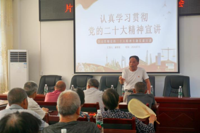 2024年7月16日下午,衡阳医学院“阳光同行”社会实践队于衡阳县金溪镇横江村村委会会议室为横江村村民举办了一场精心策划的宣讲活动。金溪镇副镇长王佳俊、南华大学衡阳医学院党委副书记卢清华及南华大学退休老教授张多来共同参与此次活动。此次宣讲内容涵盖了党的二十大精神以及日常健康安全知识,全体队员希望能以自己绵薄之力为老百姓做实事,助力乡村振兴。