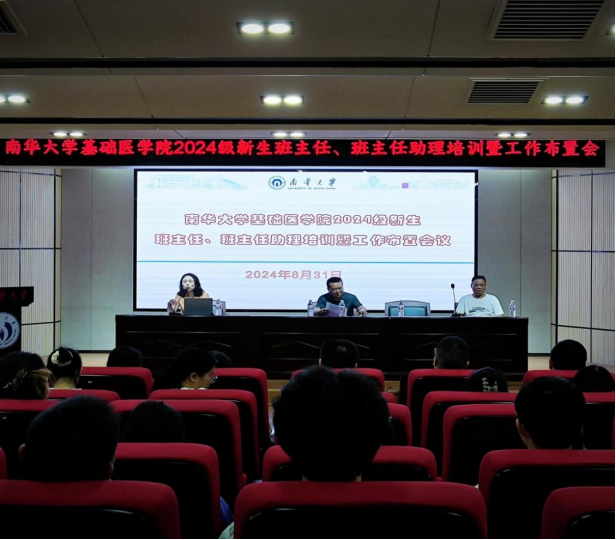 为进一步做好新学期各项学生工作,8月31日,基础医学院2024级班主任、班主任助理培训暨工作布置会于医研楼一楼会议室召开,院党委副书记卢清华,24级年级办负责人、辅导员佘雅,辅导员赵琳,院心理专干周君仪,2024级全体班主任及班主任助理参加此次会议。辅导员佘雅主持本次会议。