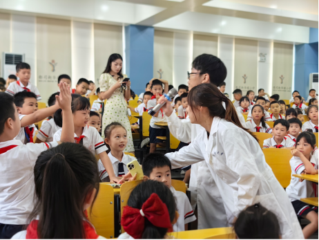 2024年9月19日,南华大学衡阳医学院口腔健康科普协会携手南华大学附属第二医院的医生团队,走进了都司街华耀小学,成功举办了一场以“关注口腔健康,提高生命质量”为主题的口腔护理保健讲座与义诊活动。此次活动旨在增强小学生们对口腔健康的认识,培养良好的口腔卫生习惯。