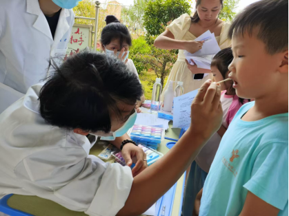 与此同时,南华附二的医生们在协会其他成员的紧密配合下,展开了专业的口腔健康检查。他们耐心细致地为每位小朋友检查了牙齿状况,特别关注了虫牙(龋齿)、系带问题以及牙齿地包天等常见儿童口腔问题,并针对发现的问题给予了初步的指导和建议,同时鼓励家长们重视孩子的口腔健康,及时就医治疗。