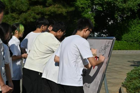 随后,同学们在主题展板上签名,以此方式向英雄致敬,并承诺将铭记历史,珍惜和平,努力学习医学知识,为祖国的医疗卫生事业贡献自己的力量。他们的签名不仅是对烈士们的敬仰,更是对自己未来的期许和承诺。