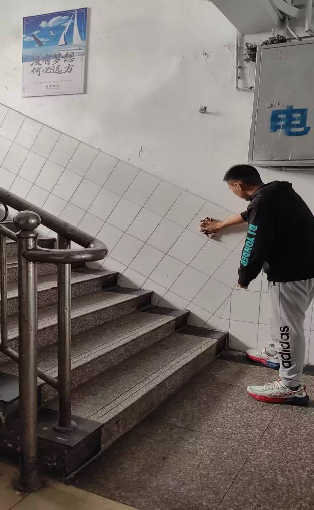 活动开始前,辅导员首先召集院宿管干部及劳动委员开会,明确了责任分工和任务标准。各班领受任务坚决,特别是党员骨干和班委带头,认真清理楼栋门口、宿舍楼梯、走廊、窗户、电表箱、消防箱、木门、墙壁等各处有碍观瞻的“牛皮癣”,他们利用铲子、清洁剂、抹布等工具,对学生公寓内各类广告、涂鸦进行细致的清理,一丝不苟地将其耐心刮除,使宿舍环境变得更加干净整洁。学院党委副书记卢清华、学院宿管专干赵琳,各年级辅导员亲临现场督导并带头参与,进一步鼓舞了同学们的劳动热情。此次活动累计清理各类“牛皮癣”广告1500余处,取得了良好的劳动教育育实践效果。