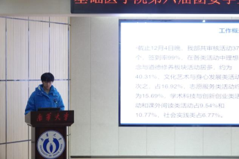 会议伊始,各部门负责人依次登台,用数据和实例详述本学期工作成果,涵盖学术、体育、志愿等多领域活动。同时,直面问题,如活动策划瑕疵、宣传短板等,并提出改进策略,展现出积极负责的态度。