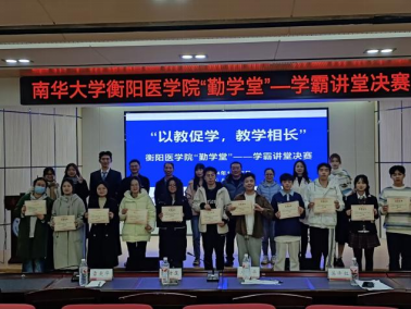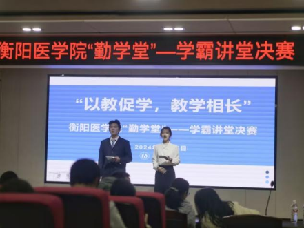 为加强学风建设,激发同学们学习热情,2024年12月7日晚,衡阳医学院“勤学堂--学霸讲堂”活动决赛在医研楼一楼报告厅成功举行。院党委副书记卢清华、基础医学院生物化学与分子生物学教研室主任苏泽红、生理学教研室主任左埒莲、免疫学教研室副主任雷爱华、病理生理学教研室彭娟以及现场约100余位观众共同参加。本次活动由基础医学院23级团总支学生会承办。