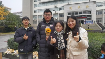 向日葵寓意着积极向上、永不放弃的精神。老师将它们赠予考研学子,希望他们在考研的路上能够像向日葵一样,始终保持着对知识的渴望和对梦想的追求,无论遇到多大的困难和挑战,都能坚定地追寻心中的阳光,勇敢走向成功。这份礼物是对学子们考研之路的美好