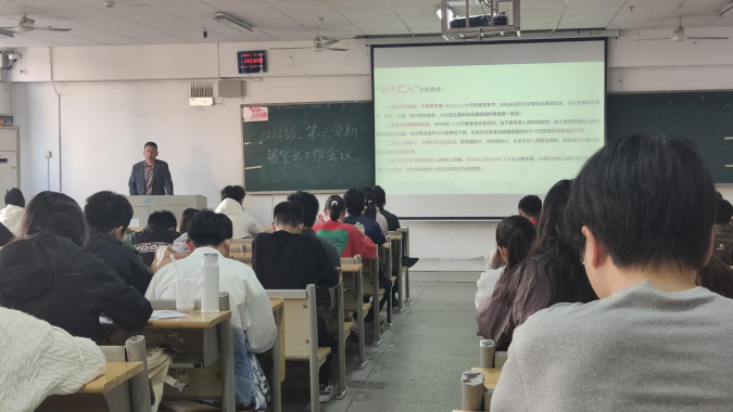 随后,辅导员郭志勇围绕寝室管理的核心内容,从多个维度进行了详细的讲解与工作部署。在安全管理方面,结合近年来高校发生的典型安全事故案例,要求寝室长们务必时刻保持警惕,严格监督室友规范用电行为,定期对寝室进行全面细致的安全隐患排查,对于发现的各种基础设施损坏,一旦发现问题立即上报进行宿舍维修,提供给大家一个温馨舒适的宿舍环境。谈及卫生管理时,明确了寝室卫生的具体标准和检查流程,强调良好的卫生环境是保障同学们身体健康的基础。要求各寝室形成常态化的卫生清扫和保持机制,争取让每一间寝室都成为干净整洁的温馨小家。