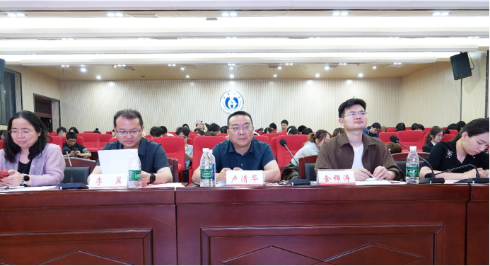 2025年4月18日,南华大学基础医学院第七届团委学生会学社联主席团候选人竞聘演讲活动在医研楼学术报告厅顺利召开。本次活动旨在选拔优秀学生干部,推动学院团学工作高质量发展。基础医学院党委副书记卢清华、学工办主任李翼、团委书记金锦涛、研究生办负责人周君仪、24级辅导员胡奉佳出席,来自各年级的百余名观众裁判参与活动。