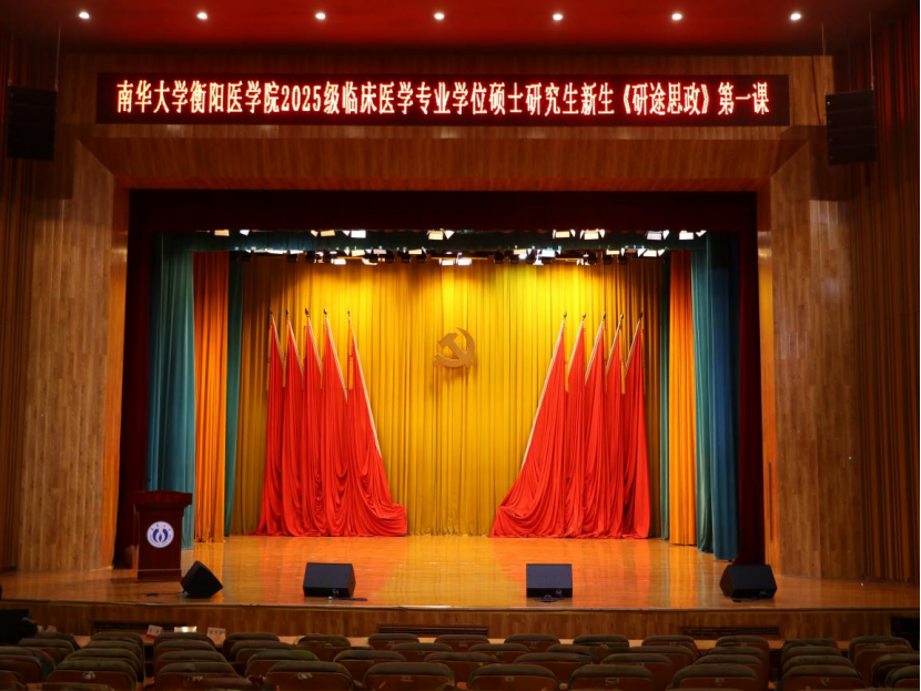 为引导新生树立正确的科研观和价值观,增强使命感与责任感,2025年6月30日下午,南华大学衡阳医学院在红湘校区南校学术报告厅举办了2025级临床医学专业学位硕士研究生入学教育暨《研途思政》第一课。活动由衡阳医学院研究生工作办公室周君仪老师主持。衡阳医学院党委副书记卢清华,原马列部主任张多来教授,第二临床学院教学与学生工作部主任陈亚军老师、戈欣老师、傅亚老师,衡阳医学院医学研究生教育与住培管理办公室主任王双老师,以及2025级全体临床医学专业硕士研究生共同参加了此次活动。