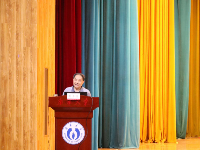 第三堂课,南华大学退休老教授张多来老师做主题为《南华精神与(原衡医)“80”现象》的专题讲座,张老师在课堂上围绕“南华精神”的中心思想,讲述了南华精神的历史沿革与内涵,衡阳医学院“80现象”一一衡阳医学院80级杰出校友的榜样故事,生动诠释南华精神的重要意义。在张教授的“故事会”中,“ 中国医师给我的手 ”、“保腿还据腿”、“剖腹产”三个中国医生援非故事,让同学们深刻领会了精神传承的重要意义,激励着青年学子在新时代续写南华荣光。