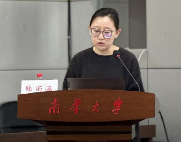 首先,陆雨函以《关于有机化学合成的成果及经验分享》为主题为大家做了一场专业的学术分享。陆博士在简单介绍个人科研成绩的基础上,进一步与大家分享了个人在硕士阶段、博士阶段的科研经历,以及研究生阶段学习的感悟。陆博士将这些经历总结为四个字——脚踏实地。牛湘衡教授非常赞同陆博士的四字总结,他说:这四个字实在实用,科学研究需要的就是脚踏实地,充分肯定了陆雨函的积极乐观,希望我们所有研究生在科研中坚守吃苦耐劳、脚踏实地、实事求是的科研精神。