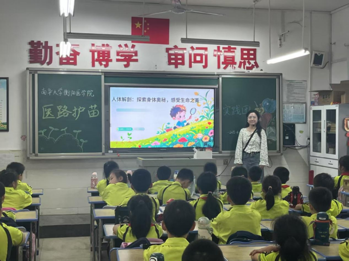 为帮助小学生掌握健康知识,实现大手拉小手构建健康生活共同体目标,4 月 28 日,南华大学衡阳医学院 "医路护苗"实践育人团队走进蒸湘区实验小学,为二年级9班50余名学生带来了一场生动有趣的 "人体奥秘探索之旅"。