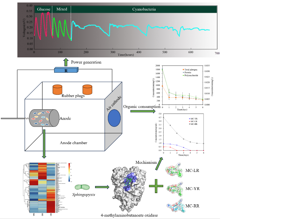 图2:MFC系统电能输出与藻毒素降解机制图解