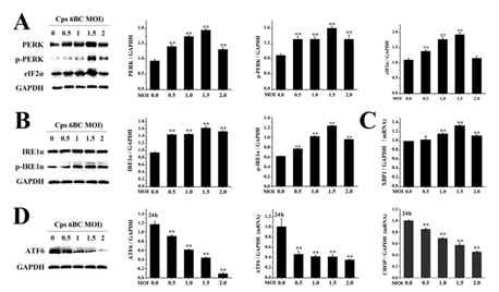 图2. Cps感染HBE细胞激活PERK和IRE1α,抑制ATF6信号通路