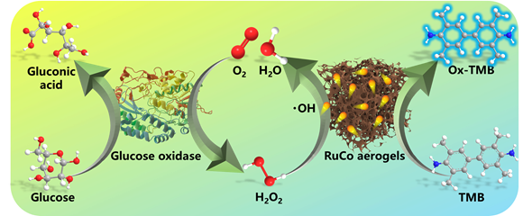 图1基于RuCo气凝胶和葡萄糖氧化酶的葡萄糖传感原理图