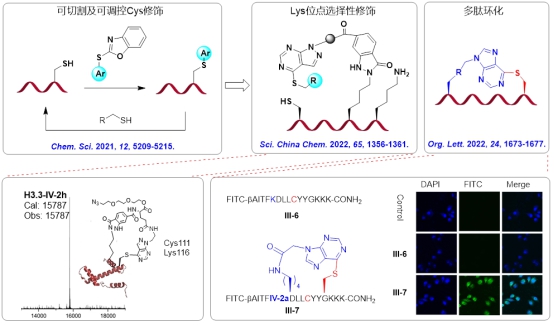 多肽及蛋白质化学选择性修饰可简便有效的赋予其特定的功能,在探究蛋白质结构与功能、研究蛋白-蛋白相互作用、监测细胞内病理及生理学进程、抗体-药物偶联物制备等方面发挥着重要作用。因此,开发高效及高选择性的修饰方法具有重要意义。南华大学药学院王震教授团队李坚博士研究聚焦于多肽及蛋白质化学修饰与应用,目前已取得系列研究进展(Chem. Sci.2021,12, 5209-5215.,Sci. China Chem.2022,65, 1356-1361.,Org. Lett.2022,24, 1673-1677.)。