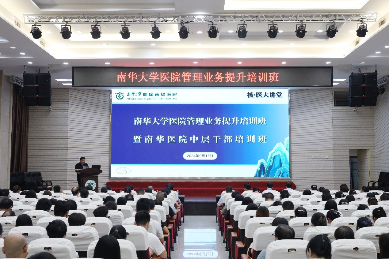 本次培训会得到了南华大学附属南华医院的大力支持,同时该培训会也是南华大学附属南华医院中层干部培训会、南华医院核·医大讲堂。南华大学衡阳医学院医院管理办公室、南华大学各附属医院院领导、相关科室负责人、硕士研究生导师、医务人员代表及学生代表等200余人参会。
