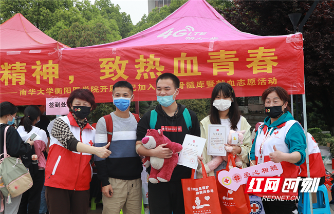 4月20日,南华大学衡阳医学院团委在南华广场开展义务献血和自愿加入中华骨髓库活动