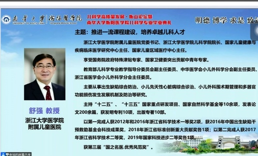 舒强教授作《推进一流课程建设,培养卓越儿科人才》讲座,他强调教育改革与创新是新时代医学教育的根本要求,要推进儿科一流课程建设就要培育优秀的儿科人才,推进一流儿科课程建设,做到效果显著。