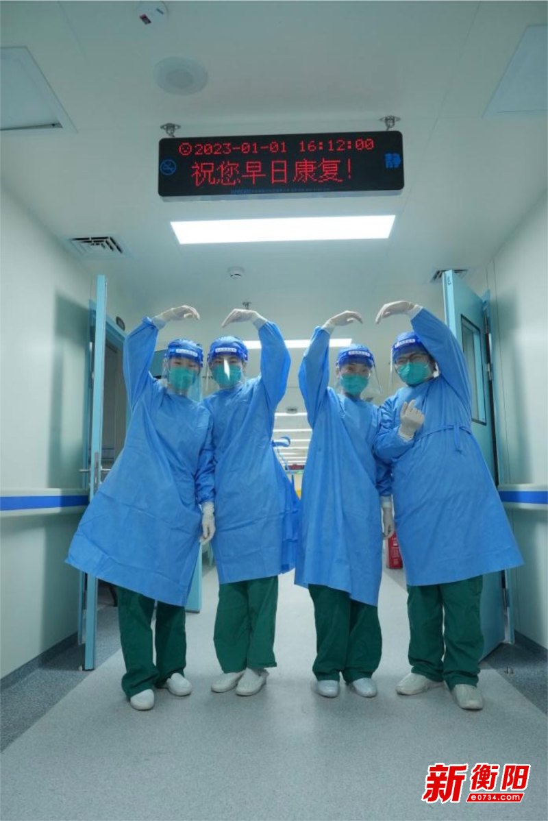 “您的健康是我们的心之所系和新年愿望!”重症监护室里,一名医务工作者拳心紧握,正在给患者打气加油。